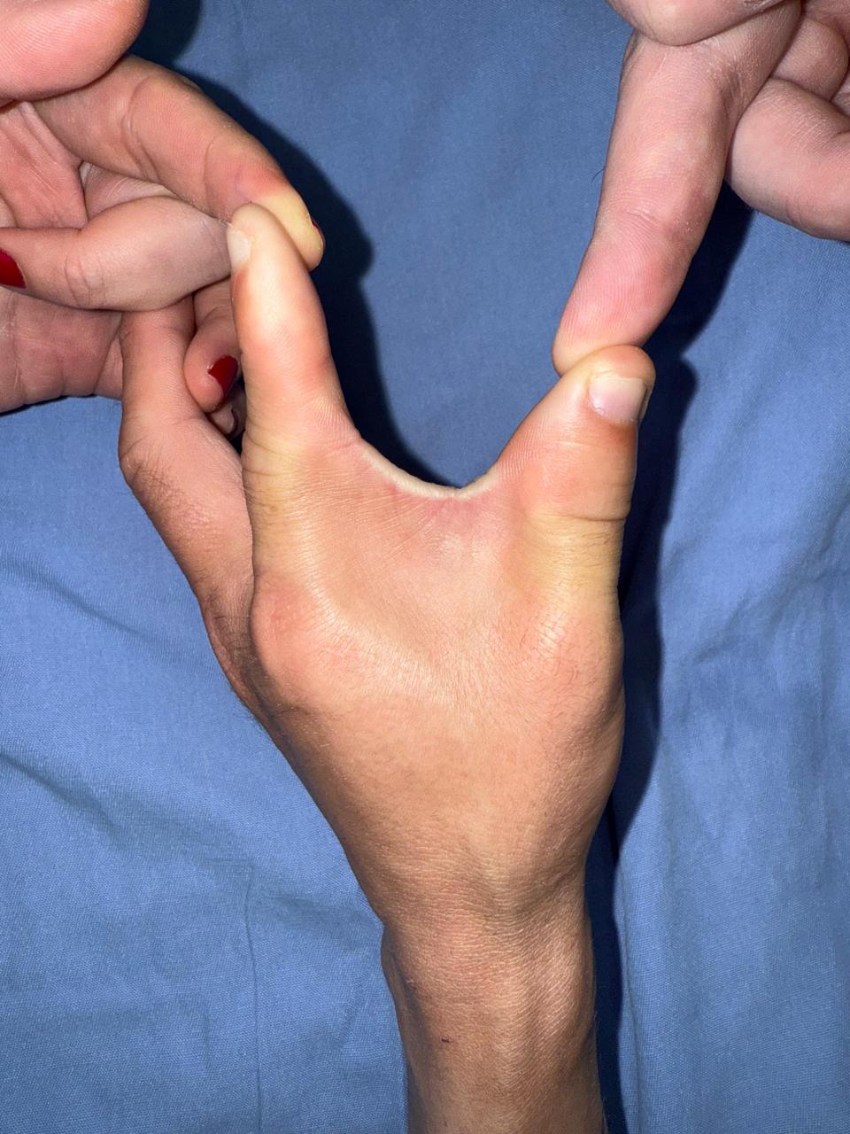 Em casos mais avançados, pode ocorrer contratura da comissura, limitando significativamente a mobilidade da mão.